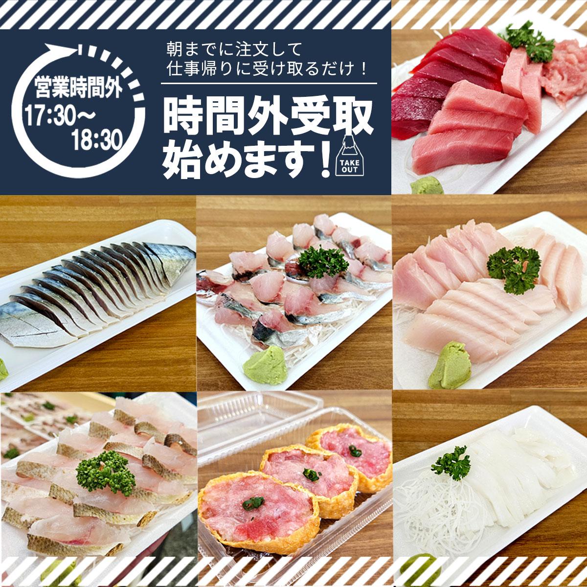 焼津一番の豊富な刺身、旬の切身物、冷凍商品、 自家製の天日干し干物、 こだわりの日替わりどんぶり、天然鮪のブロック・柵 |